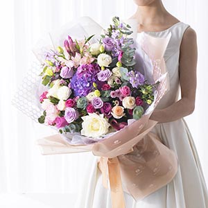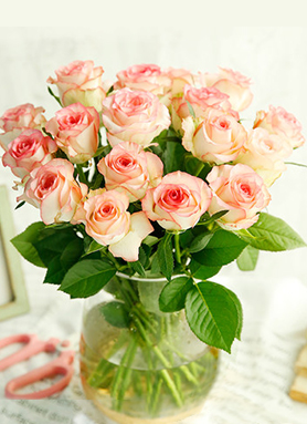 Cherish珍愛鮮花系列9枝粉玫瑰+梔子葉